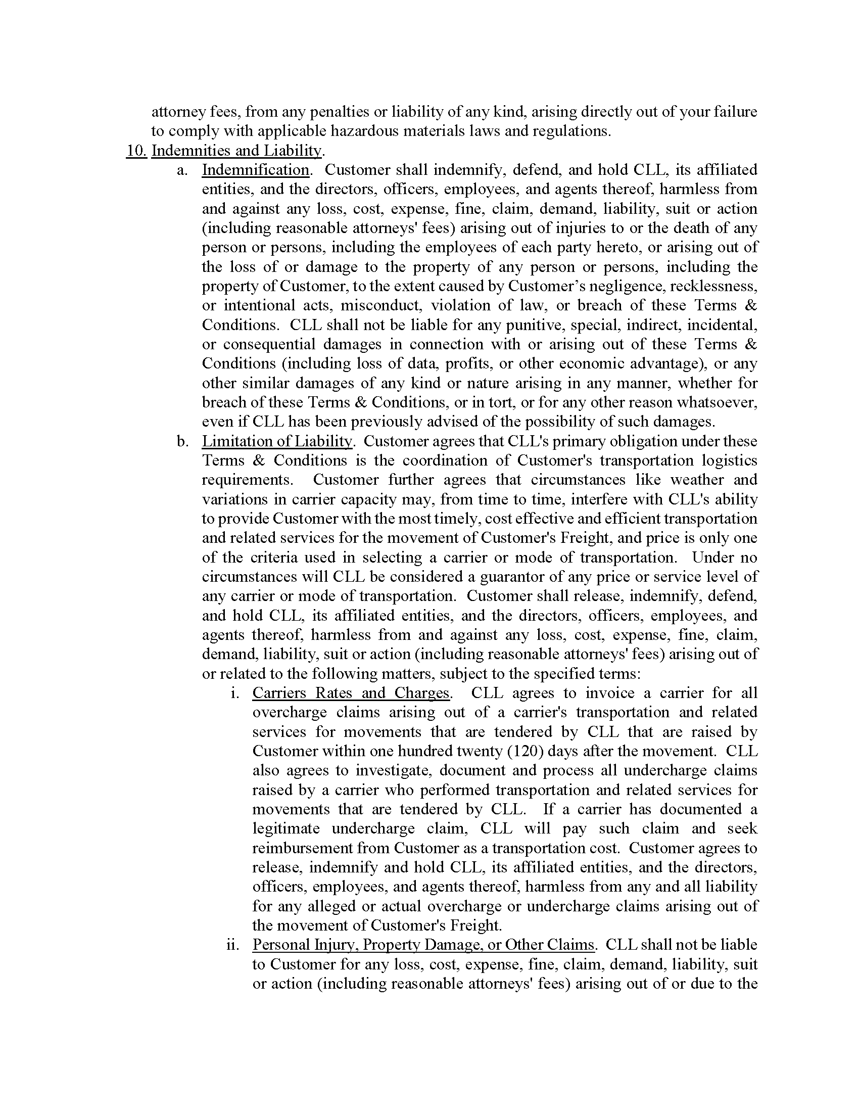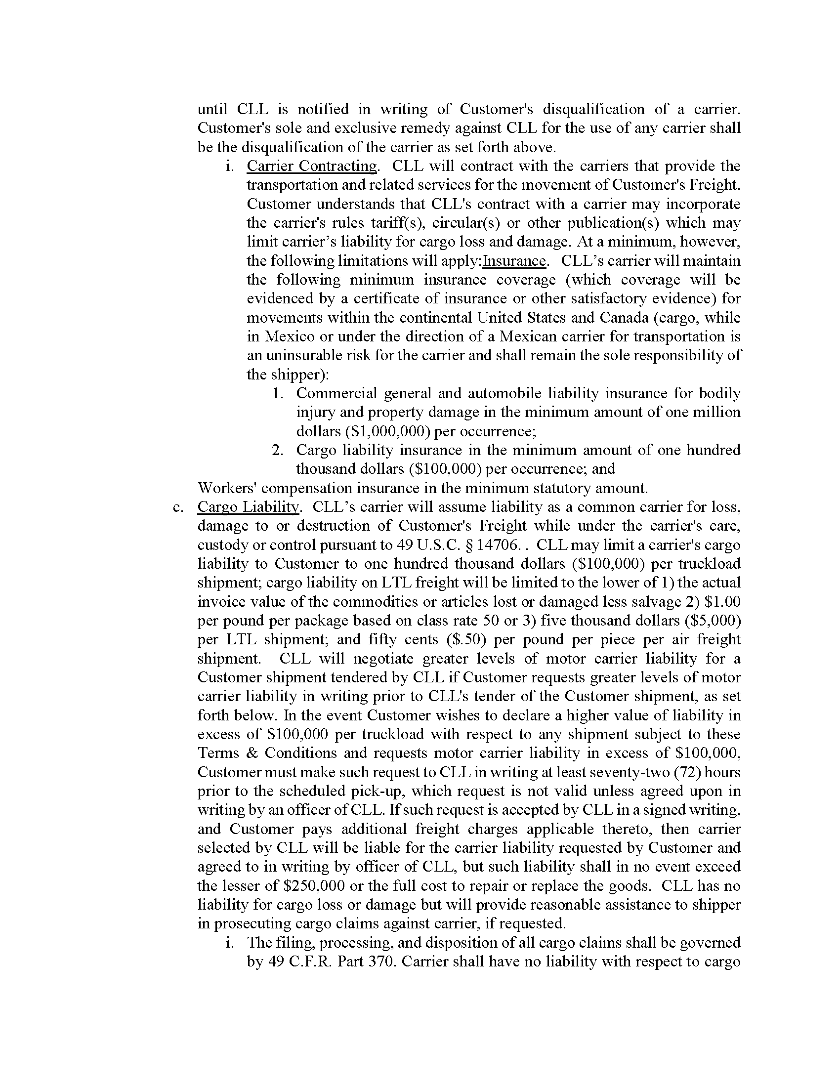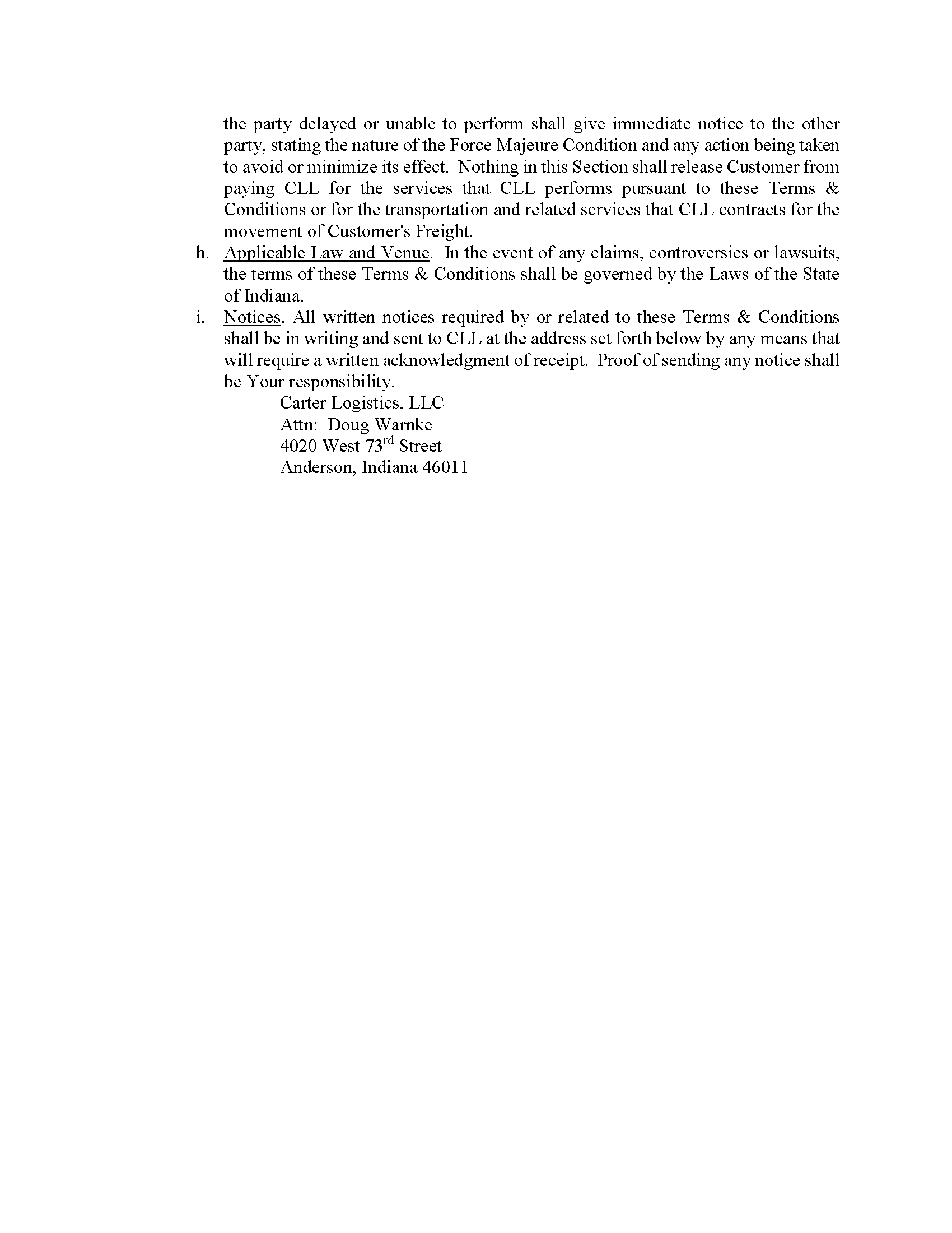 Carter LOGISTEED Logistics Terms & Conditions