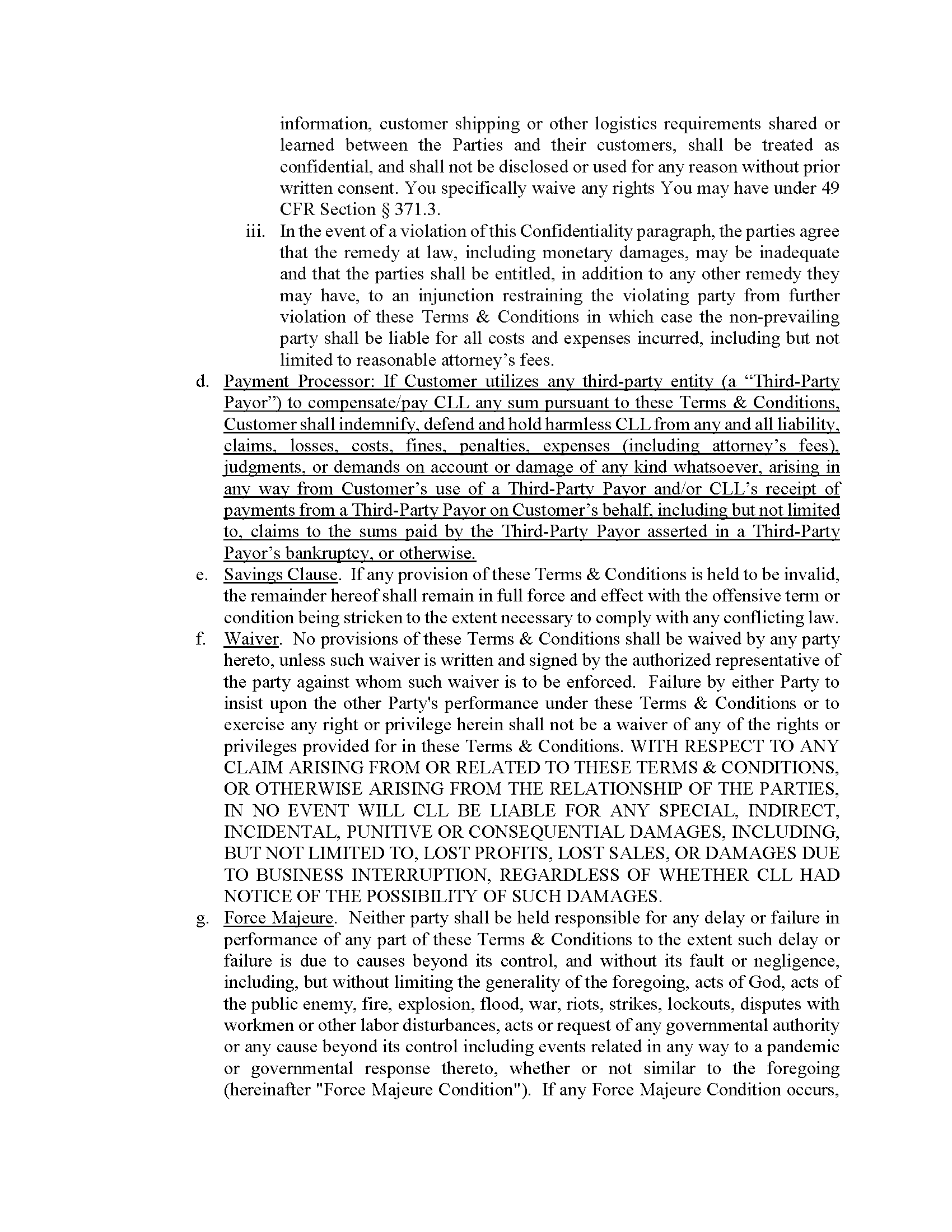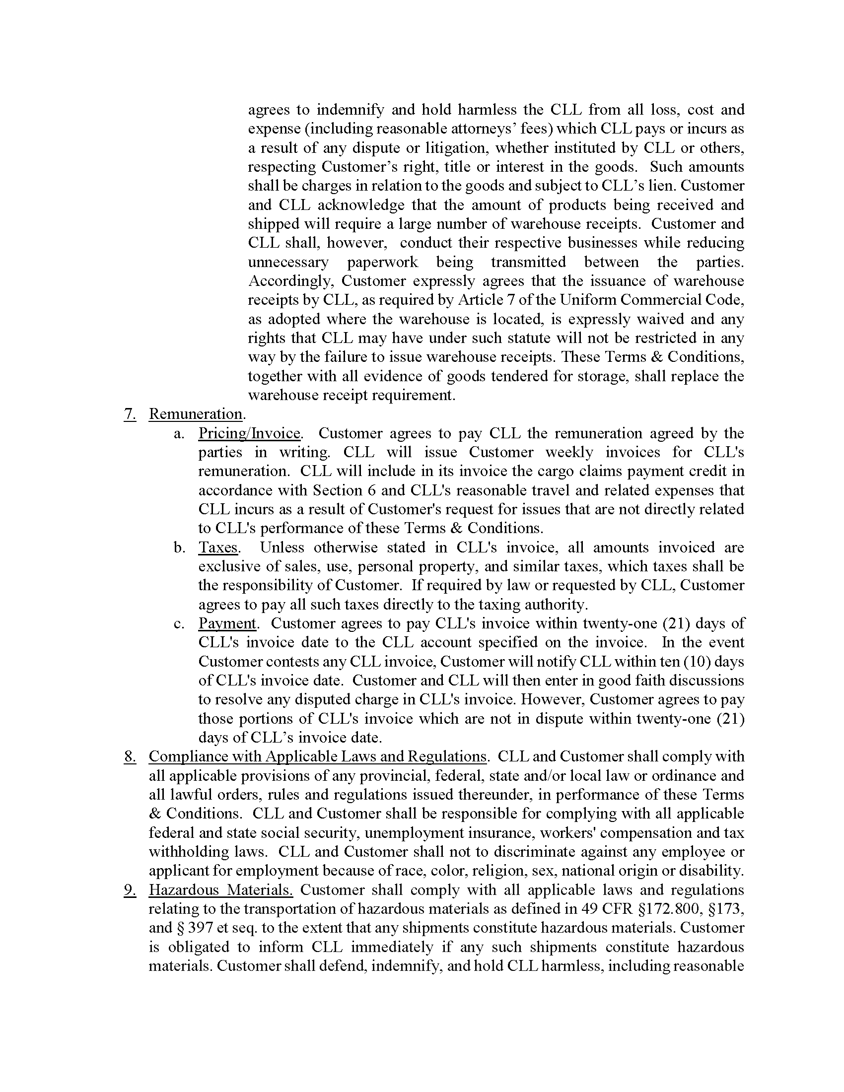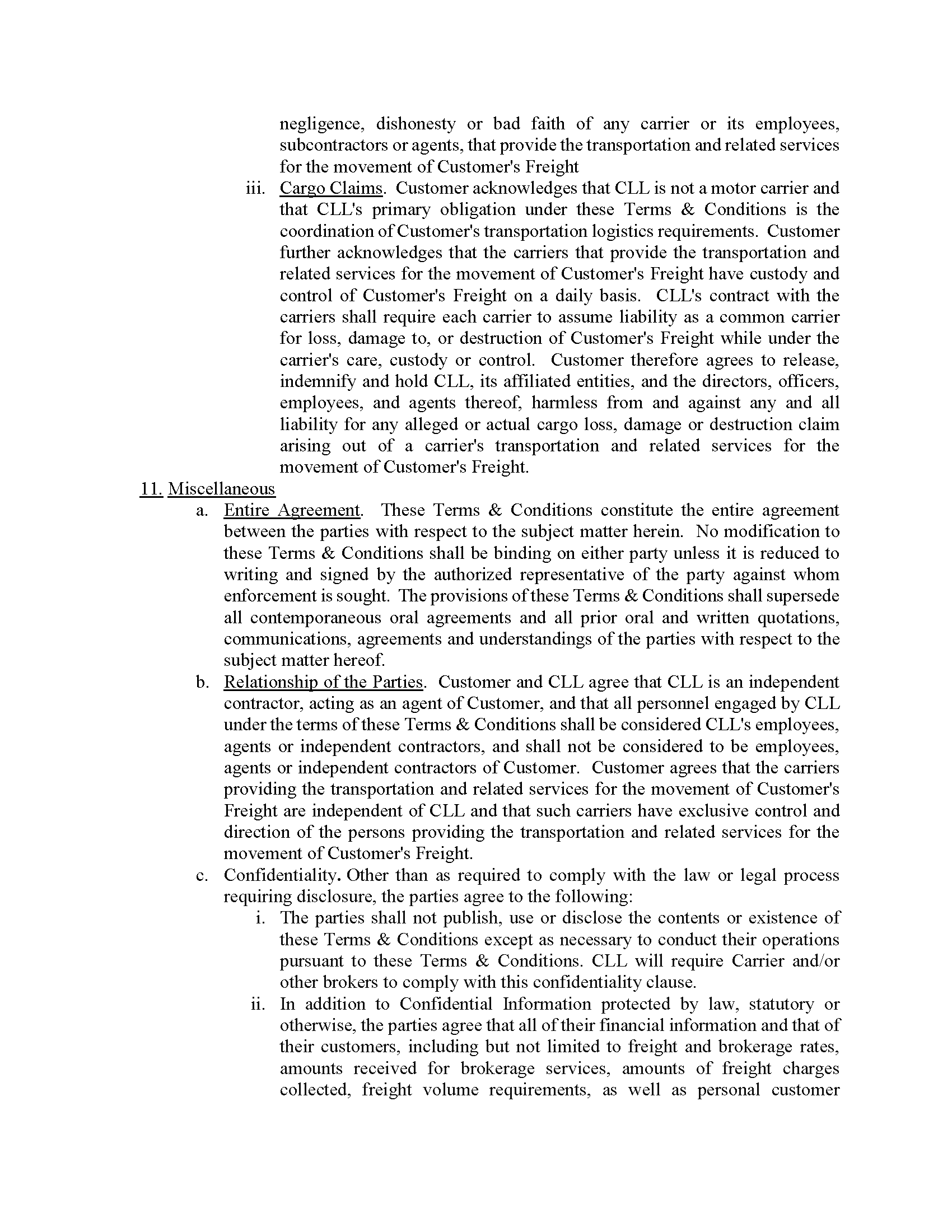 Carter LOGISTEED Logistics Terms & Conditions